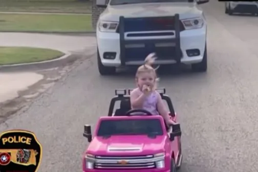 O fetiță de doar 2 ani a fost trasă pe dreapta de poliție. A fost surprinsă ”gonind” pe șosea cu o decapotabilă roz