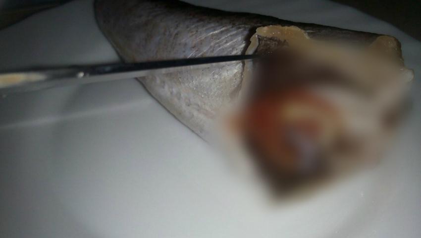 A cumpărat pește înghețat însă n-a mai apucat să îl mănânce. Consumatorul spune că va merge să facă o reclamație la Centrul de Sănătate Publică, deoarece alimentul pe care l-a achiziționat nu prezintă siguranță pentru a fi consumat. Potrivit acestuia, peștele conținea niște viermi uriași, ,,mari cât degetul”!