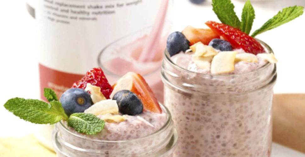 Amestecaţi o lingură de seminţe de chia cu ½ cană de lapte de soia cu aromă de vanilie. Lăsaţi să se odihnească timp de 10 minute până începe să se îngroaşe, apoi puneţi fructe proaspete deasupra.