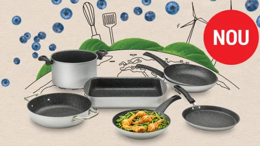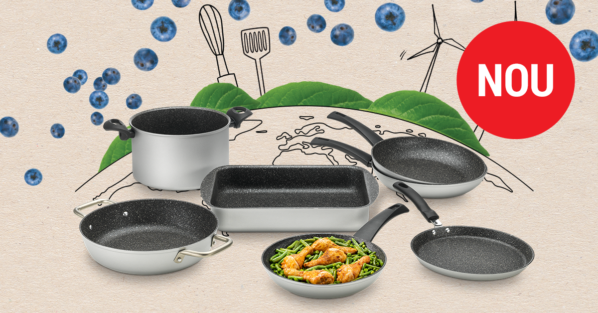 Setul de vase Delimano Green Planet este fabricat din 100% aluminiu reciclat. Vasele fabricate din aluminiu reciclat produc cu 95% mai puține deșeuri decât cele fabricate din aluminiu pur. Odată ajunse în bucătăriile voastre vă vor fi de mare folos, deoarece aluminiul menține căldura într-un mod uimitor, pregătind bucatele uniform și rapid.