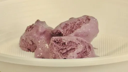 „Gustul vine mai mult din baza de lapte şi din afine, dar datorită acestei arome de trandafir are proprietăţi de calmare, liniştire, inclusiv de calmare a tusei. O îngheţată care să facă bine la tuse, care să calmeze gâtul copiilor. Este o noutate. Nu are deloc conservanţi, este doar pe bază de lapte, este cu ou. Nu are stabilizator, niciun fel de colorant, doar produse naturale”, spune Isabela Anghel.