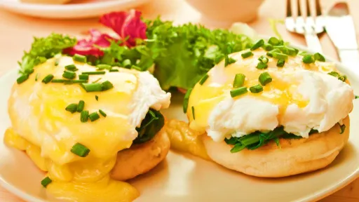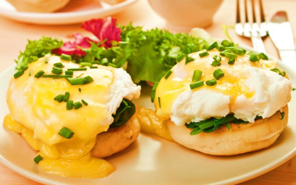 Mod de preparare:Ouăle se fierb sau se poșează. Între timp, ne ocupăm de spanac. Se spală bine frunzele, se pune 1 linguriță de unt într-o crăticioară. Când acesta s-a topit se pune spanacul deasupra și se lasă la călit doar până se înmoaie ușor.Taie chiflele în 2, prăjește-l un pic, dă-le cu unt. Pune câte o felie de roșie pe fiecare în parte și câte o lingură plină cu spanac. Când sunt gata ouăle, pune-le, așa fierbinți, deasupra spanacului.Toarnă sos olandez din belșug și servește-le cât sunt calde.