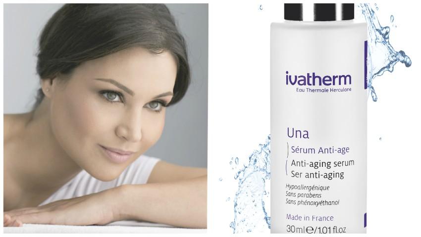 este bogată în minerale și oligoelemente esențiale sănătății pielii, cu proprietăți calmante și anti-iritante. Efectul său împotriva îmbătrânirii pielii este demonstrat prin studii clinice (studiu in vitro pe keratinocite umane de cultură, evaluare viabilitate celulară după expunere la radiații UVA, în prezența Apei Termale Herculane, realizat de Prof. Dr. Rodica Cosgarea, Șef Clinică Dermato-Venerologie Cluj-Napoca).[blockquote-quoted],,UNA a fost inspirată de ideea că frumusețea femeilor este unică, iar trecerea anilor nu face altceva decât s-o îmbogățească și s-o rafineze. Ivatherm crede în frumusețea fără vârstă a femeii și aduce un produs inovator”, declară Rucsandra Hurezeanu, Director General Ivatherm.[/blockquote-quoted]Indicat pentru toate tipurile de piele matură, chiar și cea mai sensibilă, Una Ser anti-aging are vizibil efect de întinerire asupra pielii în numai 16 zile (test in vivo - studiu clinic efectuat pe 22 de femei, cu aplicație pe jumătate de față: în urma studiului in vivo realizat, se observă, după numai 16 zile, scăderea vizibilității ridurilor la 45% dintre voluntare și creșterea luminozității tenului pentru 54% dintre ele. (Dr. Alain Beguin - Skin Test Institute, Neuchatel, Switzerland).Reduce adâncimea și numărul ridurilor de pe față, gât și zona perioculară, crește luminozitatea tenului și redă suplețea și finețea pielii mature. Cu o textură fluidă și lejeră, se absoarbe rapid în piele.Se recomandă aplicarea dimineața și seara înaintea cremei de față.Formulă fără parabeni și fără fenoxietanol.Una Ser anti-aging este disponibil în rețeaua ,,Farmacia Familiei”.