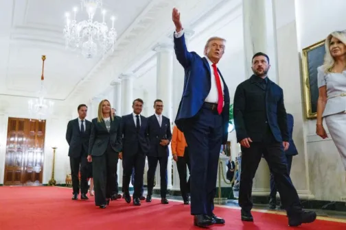 Imagine 19/08/2025 -06:39 General Summitul de la Casa Albă: Europa răspunde unită după avertismentul lui Putin din Alaska. Trump a întrerupt discuțiile cu liderii europeni pentru a-l suna pe Putin