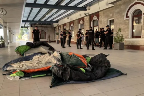 Imagine 16/08/2025 -17:47 General Poliția a demontat corturile susținătorilor lui Ilan Șor, de pe peronul Gării din Chișinău
