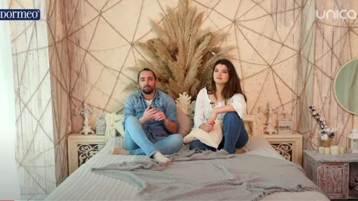 Invitaţi să se facă comozi pe salteaua de la Dormeo, ne-au povestit despre cei doi copii crescuţi la teatru, despre prima nuntă moderată, mai mult de nevoie decât de voie şi cei 3 ani în care nu au avut nevoie de un pat în casă, pentru că au dormit pe o saltea, la podea.