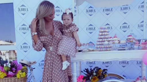 Ieri, vedeta de pete Prut i-a tăiat moțul fetiței. Tânăra mămică și-a îmbrăcat sărbătorita într-o rochiță cu buline, pe care a asortat-o cu ținuta sa. În mai puțin de o oră, imaginea cu cele două a adunat sute de like-uri.[blockquote-quoted],,Azi am rupt turta 🎀🎂 si am purtat rochite la fel👗👗Ghiciti ce a ales Sofia??!”, a scris Bianca Drăgușanu pe pagina sa de facebook.[/blockquote-quoted]Bianca Drăgușanu se bucură din plin de clipele maternității. Anterior aceasta a postat un filmuleț cu Sofia. Fetița încerca să facă primii pași.