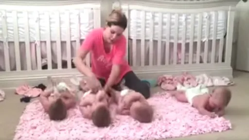 După opt ani, în care au încercat cu insistenţă să conceapă un copil, soţii Gardner au decis să facă procedura de fertilizare in vitro. Şi, surpriză! Ambele ovule fecundate s-au implantat, şi chiar mai uimitor, fiecare dintre ele s-a divizat încă o dată. Familia Gardner are cvadrupleţi gemeni, patru fetiţe.Primii gemeni septupleţi din lume au împlinit vârsta de 18 ani!Soţul, pe semne fascinat de îndemânarea, dexteritatea, soţiei sale, a decis să o filmeze pe aceasta într-un moment cu totul ordinar al zilei, schimbatul scutecelor la copii.De îndată ce a fost postat, filmuleţul a cucerit publicul acumulând mii de like-uri din partea internauţilor, impresionaţi de faptul cum această mămică stăpâneşte arta schimbării scutecelor şi îi reuşeşte de minune să împartă dragostea ei celor patru bebeluşi gemeni ai săi!https://youtu.be/g_Lx2j-deJY