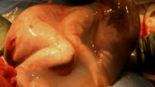 Fătul este păstrat în sacul amniotic pentru un timp şi se pare că acesta continuă să respire în mediul extern prin placenta ataşată de uterul mamei deocamdată. Filmuleţul a fost captat de către o doula, în timpul unei naşteri.