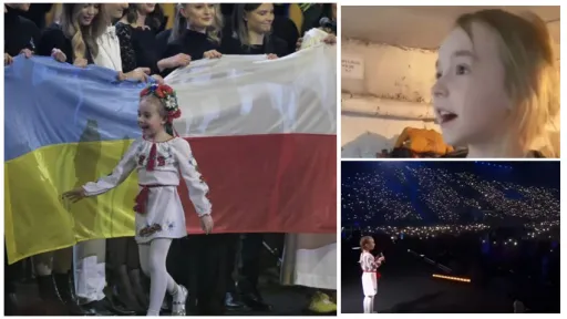 Amelia, fetița de 7 ani care a cântat „Let it Go” într-un buncăr din Kiev, și-a împlinit visul de a cânta pe o scenă mare. Fetița refugiată împreună cu fratele ei în Polonia, a cântat imnul Ucrainei pe un stadion din Lodz la un cocert caritabil.