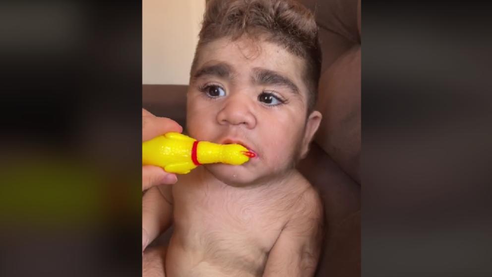 Cea mai recentă senzație pe internet o constituie imagini cu un bebeluș care are o cantitate impresionantă de păr pe tot corpul. Deși el nu face nimic neobișnuit, micuțul are barbă, sprâncene stufoase și păr din cap până în picioare.