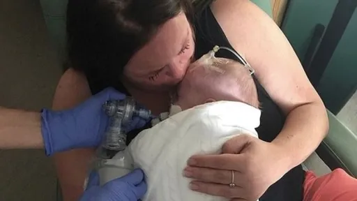 Wilber a făcut stop cardiac și a rămas cu leziuni ale creierului foarte severe. Mama îndurerată a decis să facă publică suferința să, dar nu pentru a fi compătimită, ci pentru a demonstra și altor părinți care au trecut prin situații similare că indiferent de cât de mari sunt durerea, disperarea și senzația de neputință, reușești să depășești ușor, ușor, momentele critice.„Pentru prima dată de la nașterea lui Wilber am putut să-l iau în brațe și să-l plimb”, a spus Tammy despre momentul în care mergea plângând pe coridoarele spitalului cu bebelușul în brațe. „Dar pe măsură ce înaintăm pe coridor mi-am dat seama că această este prima și ultima plimbare pe care o vom face împreună. Atunci am izbucnit. Acesta este momentul pe care Mark l-a surprins în fotografii”, a declarat femeia pentru Daily Mail.Acum, mama își amintește de fiul ei ascultându-i bătăile inimii. Sunetul a fost înregistrat și inserat într-un elefant de plus. Tammy ia jucăria peste tot. Vrea să-și simtă fiul mereu aproape, iar jucăria cu sunetul inimii lui îi da putere.Băiețelul a venit pe lume cu o mutație genetică rară care a cauzat boală miezului central (central core) care constă în slăbiciunea mușchilor și întârziere motorie. Bebelușul nu s-a putut mișcă singur și nici nu a putut respiră singur niciun minut după venirea să pe lume, în mai 2018. „După săptămâna 20 de sarcina, doctorii au realizat că ceva nu este în regulă. M-au întrebat de mai multe ori dacă vreau să renunț la sarcina, însă am spus nu de fiecare dată”, a adăugat mama.„Îl iubeam atât de mult încât credeam că merită o șansă la viață. Prognosticul medicilor era sumbru și nu voiam să sufere, dar am sperat totuși că într-o zi îl voi putea lua acasă”, a spus Tammy. La doar 11 săptămâni după naștere, Wilber a suferit un atac de cord. Bebelușul a rămas fără oxigen o perioada prea lungă de timp, iar creierul a suferit leziuni ireparabile.„În săptămânile în care l-am avut pe Wilber alături, am construit o conexiune foarte frumoasă. Am ajuns să-i cunosc personalitatea puternică. L-am iubit enorm și am simțit că și el m-a iubit la fel de mult”, a adăugat mama.Femeia suferea de endometrioză și renunțase deja la gândul că va avea un copil vreodată. Tocmai datorită miracolului prin care a rămas însărcinată, Tammy nu a vrut să renunțe la bebelușul ei, chiar dacă a știut că băiețelul e grav bolnav și că nu are șanse prea mari de supraviețuire. După o serie de teste genetice, doctorii i-au pus băiețelului diagnosticul: o mutație a genei RYR1 care a determinat boală miezului central (central core) și Artrogripoză.Tammy a făcut o pagină de Instagram dedicată bebelușilor născuți cu astfel de probleme genetice, în speranța că va putea să între în legătură și cu alți părinți care au trecut prin situații similare.Sursa