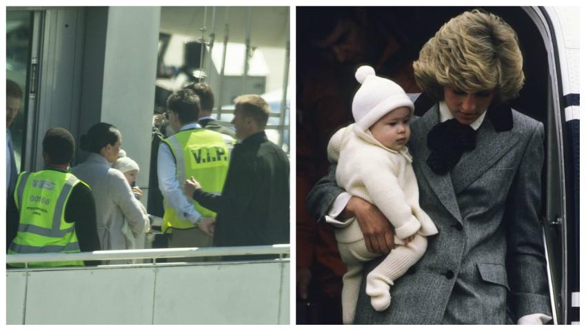 Luni, ducii de Sussex, Harry și Meghan, au ajuns împreună cu fiul lor de numai 4 luni, Archie, în Africa. Iar când au coborât din avion, toată lumea a rămas uimită. Cei mai în vârstă au avut un deja-vu. Asta pentru că micul Archie era îmbrăcat precum tatăl său, cu 35 de ani în urmă, atunci când prințesa Diana a coborât cu el în brațe din avion, aterizând în Aberdeen.