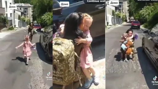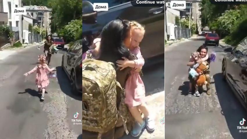 Momentul în care o fetiţă de doar câţiva anişori îşi revede mama, soldat ucrainean, a fost surprins în imagini, ce au devenit virale pe reţelele de socializare.