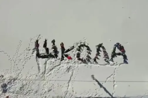 Imagine 25/03/2021 -18:57 Mama şi copilul Gest disperat. Mai mulți copii s-au culcat pe zăpadă și au format cuvântul ,,școala”