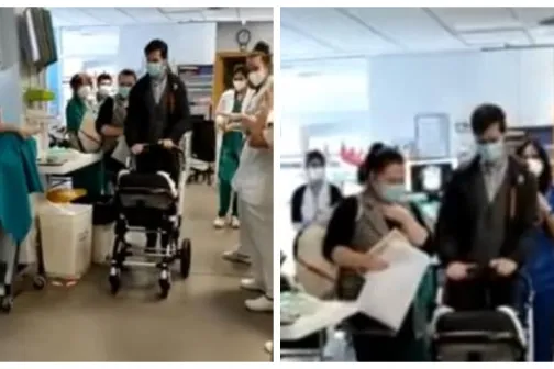 Imagine 07/01/2021 -23:50 Mama şi copilul Bebeluș vindecat de Covid după 70 de zile, externat cu aplauze