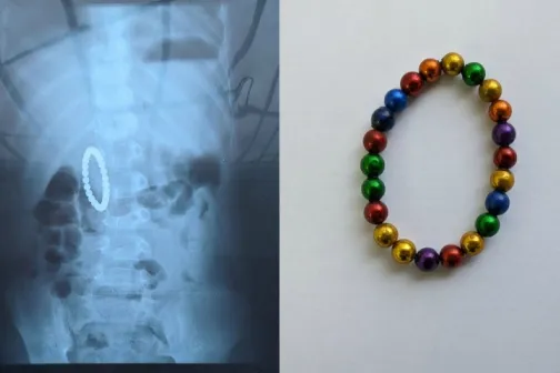Imagine 10/12/2020 -10:29 Mama şi copilul Un copil din Capitală, salvat de medici după ce a înghițit o jucărie cu bile magnetice