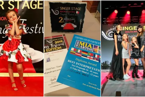 Imagine 11/11/2019 -20:34 Mama şi copilul La doar 7 anișori, Evelina Rusu a obținut locul II la concursul internațional de muzică ,,Singer Stage” din Malta