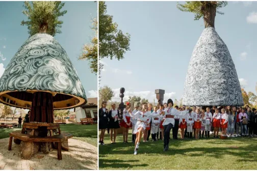 Imagine 20/10/2019 -17:26 Mama şi copilul ,,Sub cușma lui Guguță”. O frumusețe de bibliotecă în aer liber a fost inaugurată la Costești