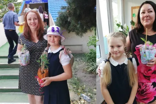 Imagine 04/09/2019 -23:34 Mama şi copilul Mai mulți copii au mers la prima zi de școală cu puieți de copaci, în loc de buchete de flori