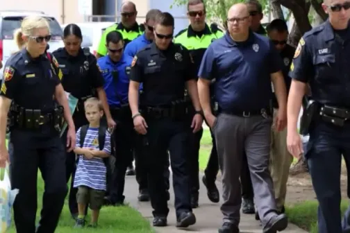 Imagine 29/09/2017 -11:48 Mama şi copilul Un copil a mers în prima zi de școală însoțit de 24 de polițiști
