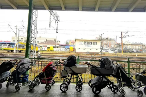 Imagine 05/03/2022 -14:40 Mama şi copilul Femeile din Polonia și-au lăsat cărucioarele pentru mamele refugiate din Ucraina