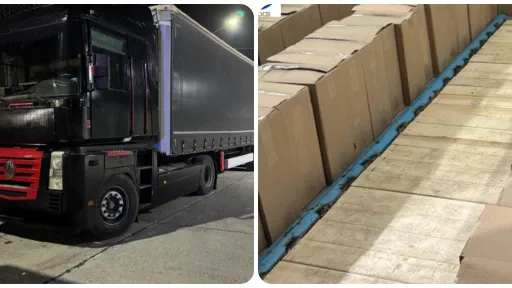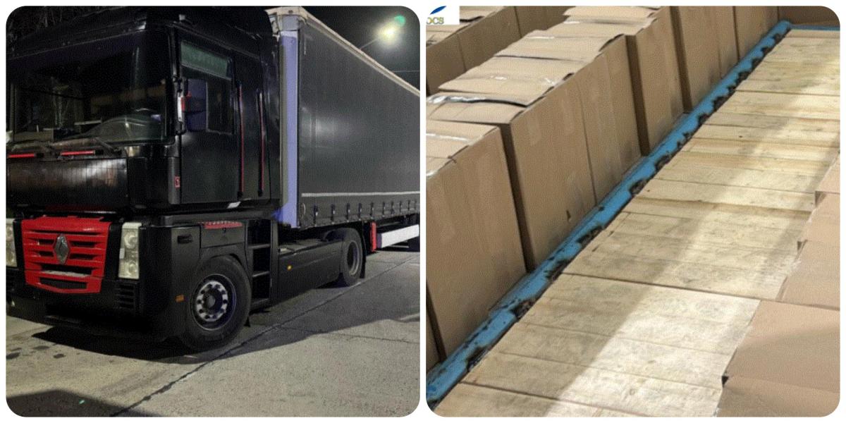 Luni seara, în urma controlului cu raze X, inspectorii vamali au observat neconformități în partea dreaptă a semiremorcii. O verificare fizică detaliată a confirmat prezența a 87 de cutii de carton fără inscripții, fiecare conținând câte 500 de pachete de țigări – în total 43.500 de pachete produse în Moldova.