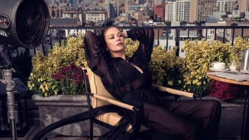 O terasă care oferă o priveliște superbă a New York-ului, un interior decorat cu stil, orhidee în fiecare cameră. Într-una din fotografii, actrița pozează teatral pe terasă, așezată pe un un scaun de exterior, lângă măsuța la care își bea cafeaua dimineața. Îmbrăcată în pijamale din satin violet, Catherine stă cu ochii închiși și cu mâinile la ceafă.Livingul e dominat de culori tomnatice, cu canapele bej, pereți într-o nuanță de muștar și covoare ruginii, în timp ce ferestrele oferă o panoramă a orașului. Holul, în schimb, este decorat modern, cu pereți albi și lambriuri din lemn negru, pardoseală din gresie și candelabre aurii. Nu lipsește și un cadru din "comoara" ei impresionantă, colecția de pantofi și cizme, aranjată în funcție de culori și dimensiunile tocurilor. sursa