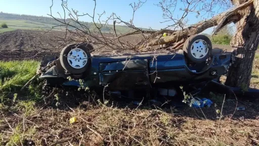 Într-o curbă periculoasă, din cauza vitezei excesive, șoferul a pierdut controlul volanului, iar mașina a derapat de pe traseu și s-a izbit violent într-un copac de pe acostament.
