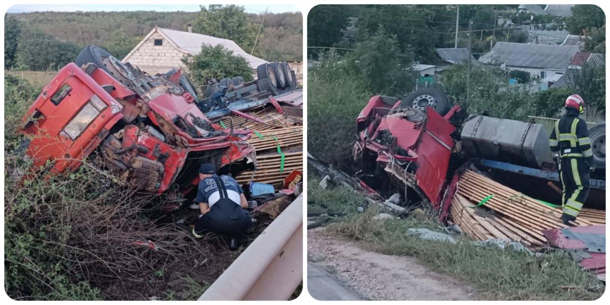 Preliminar, s-a stabilit că bărbat de 65 de ani, fiind la volanul unui autocamion înmatriculat în Ucraina, deplasându-se spre mun. Chișinău, într-o curbă, a pierdut controlul asupra volanului, a derapat de pe traseu și s-a inversat.
