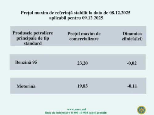 Agenția Națională pentru Reglementare în Energetică (ANRE) a publicat noile tarife la carburanți valabile pentru ziua de 9 decembrie.