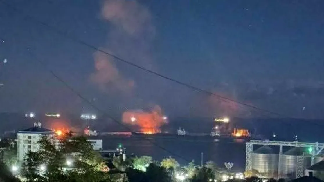 Autoritățile locale au confirmat atacul și au transmis că flăcările au afectat puntea unei nave, clădiri și structuri portuare. Din informațiile preliminare nu s-au raportat victime.