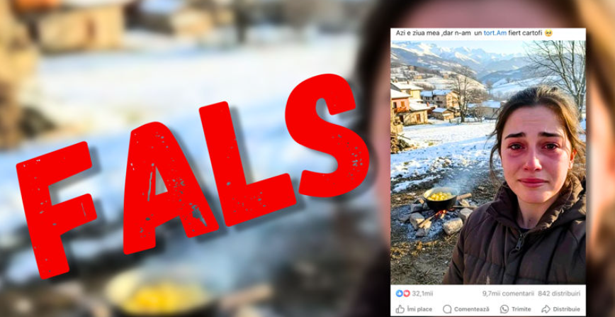 „Cu regret, iată încă un caz distribuit masiv în ultima perioadă pe diverse rețele de socializare. Peste 32.000 de aprecieri a colectat această imagine generată de AI, fiind utilizată pentru a cere donații prin Revolut, dar şi alte instrumente financiare. Multora le-a fost milă că ziua de naștere se petrece cu cartofi fierți și nu cu un „tort” şi au donat (sume deloc mici). Însă puțini sunt cei care au utilizat instrumente de verificare pentru a confirma dacă această poză este reală sau e un fals. Încercați minim să treceți imaginea prin https://wasitai.com/ și să vă convingeți dacă merită să donați pentru „un tort” sau nu”, a scris Dinu Țurcanu.
