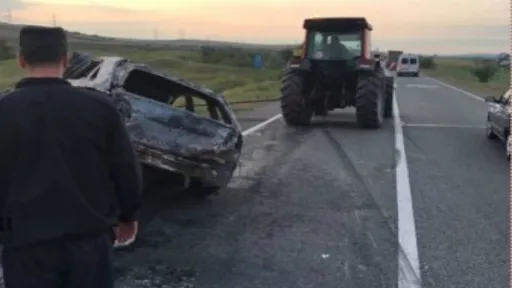 Un autoturism a ars în totalitate, iar două persoane au fost rănite, într-un accident produs în România.