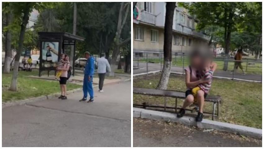 Caz revoltător în Capitală. Un bărbat a început să-și agreseze fizic soția și copilul în stradă.