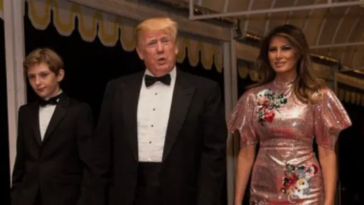 Melania Trump a îmbrăcat o rochie roz ERDEM în valoare de 4.000 de dolari, în timp ce soțul și fiul s-au îmbrăcat în costume de seară negre și au purtat papioane de aceeași culoare.Acest bal este organizat la clubul privat Mar-a-Lago al familiei Trump de 20 de ani, dar anul acesta a fost prima data când festivitățile au fost ținute în calitate de președinte.https://youtu.be/BRWLN_Hxo8Ysursa: www.libertatea.ro