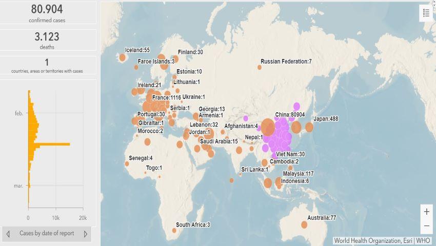 În China, au fost confirmate în total 80.904 cazuri pozitive de Covid-19. Din numărul total de bolnavi, 3.123 au decedat.