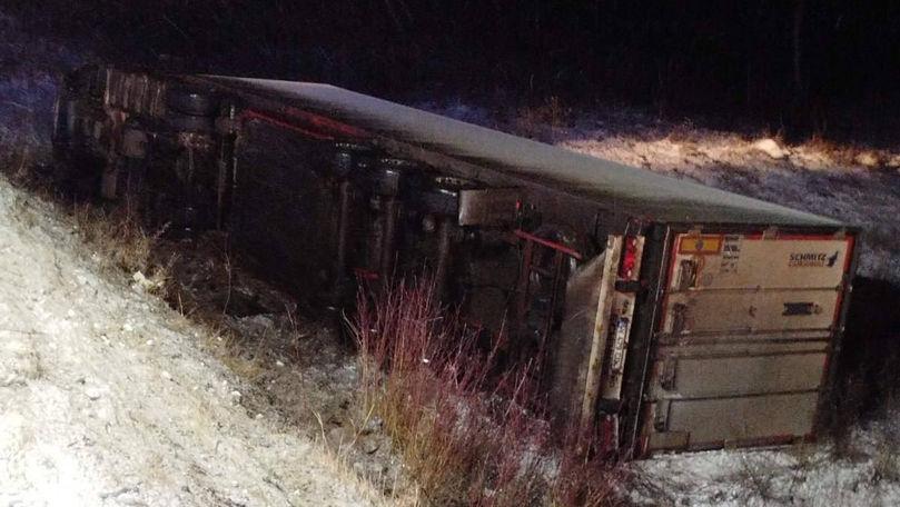 Două incidente s-au produs în municipiul Chișinău: o ambulanță a derapat în apropierea sectorului de vile din localitatea Hulboaca, iar un autocamion de tip betonieră s-a răsturnat. Alte trei cazuri similare au fost semnalate în localitatea Tribujeni (raionul Orhei), în raionul Căușeni și în apropiere de Pârlița (Ungheni), unde un camion a avut nevoie de suport pentru a fi repus pe carosabil.