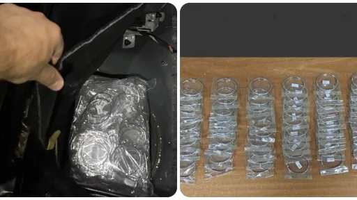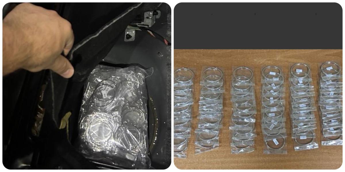 În cadrul controlului vamal, sub bancheta din spate a mijlocului de transport au fost depistate bijuterii, și anume 100 brățări presupuse a fi din argint, nedeclarate autorității vamale.