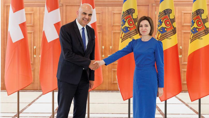 Șefa statului l-a salutat astăzi la Chișinău pe Președintele Confederației Elvețiene, Alain Berset. „Participanții summitului Comunității Politice Europene sosesc deja în Moldova. Am avut plăcerea să-l revăd pe Președintele Confederației Elvețiene, Alain Berset, de data aceasta, la noi acasă”, a spus șefa statului.
