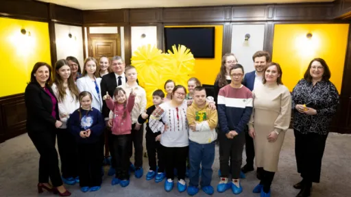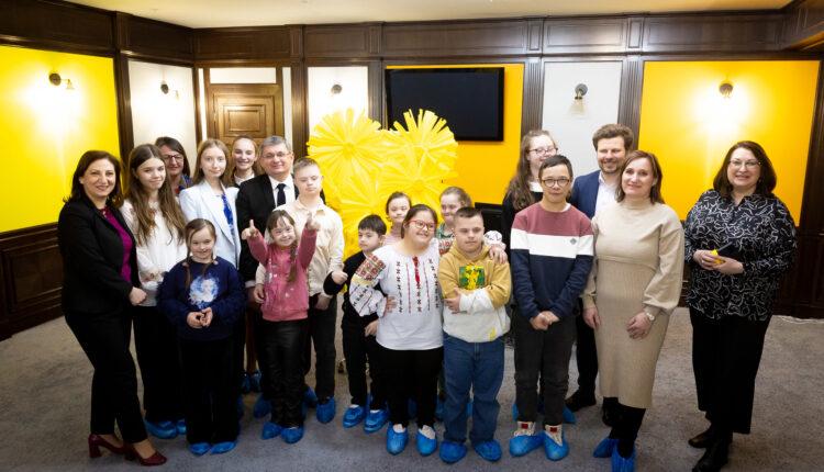 Copiii cu sindromul Down au fost oaspeți la Parlament. Speakerul Igor Grosu și Ministrul Educației Dan Perciun au participat, alături de ei, la un atelier de creație.