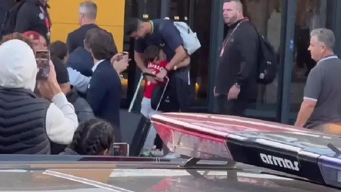 Totodată, în ciuda măsurilor sporite de securitate, un copil a reușit să ajungă la idolul său și a primit o îmbrățișare de la Cristiano Ronaldo, transmite replicamedia.md. Imagini video: