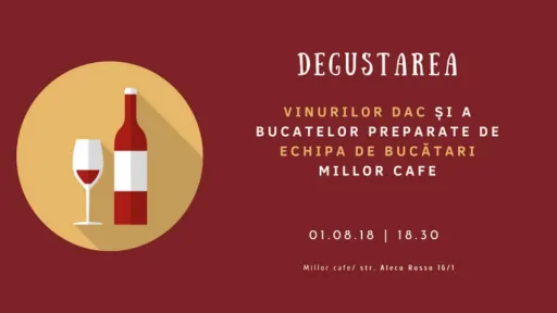 În prima zi a lunii august delectează-ți papilele gustative cu aroma licorilor gustoase perfect combinate cu bucate alese. Alege să petreci o seară frumoasă de vară în cadrul unui eveniment plăcut ce combină experiența vizuală cu cea gustativă. Degustarea vinurilor DAC și a bucatelor preparate de echipa de bucătari Millor Cafe îți va crea o atmosferă de sărbătoare plină de surprize și bună dispoziție.