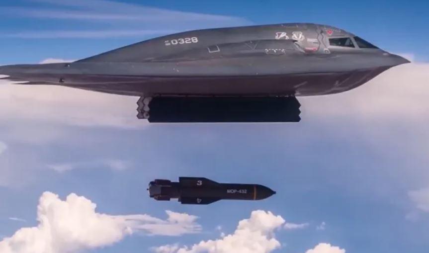 Imagine ilustrativă cu un bombardier strategic B-2 Spirit al SUA lansând o bombă „bunker buster” ca cele despre care presa americană spune că au fost folosite în atacul asupra instalațiilor nucleare iraniene. Foto: captură X