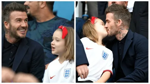 Pe rețelele de socializare, este comentat intens gestul lui David Beckham care și-a sărutat fiica pe buze, la un meci de fotbal.