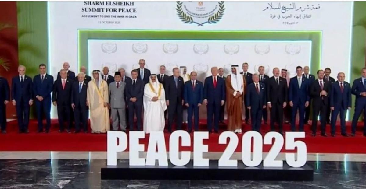 La fotografia de grup au participat, pe lângă președintele Egiptului, Abdel Fattah el-Sisi, și liderul american Donald Trump, președintele Autorității Palestiniene Mahmoud Abbas, liderii europeni Emmanuel Macron, Giorgia Meloni, Keir Starmer și Friedrich Merz. Regele Bahrainului, Hamad bin Isa Al Khalifa, și premierul ungar Viktor Orban au fost, de asemenea, prezenți pe scenă, potrivit Sky News. O prezență surprinzătoare a fost cea a președintelui FIFA, Gianni Infantino.
