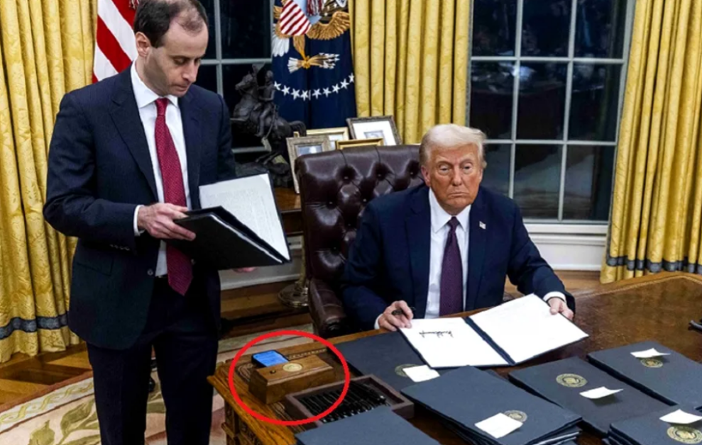 Imaginile cu Donald Trump biroul oficial al președintelui de la Casa Albă au devenit virale. Oamenii au observat că liderul american și-a instalat un buton roșu într-o cutie de lemn. Acest „obiect” a fost prezent și în fostul mandat, însă fusese înlăturat de Joe Biden, scrie cancan.ro.