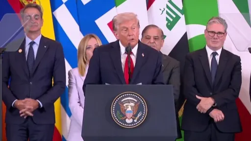 La începutul summitului, Trump a semnat oficial acordul, în timp ce zeci de lideri mondiali stăteau în spatele său. „Ei doreau să rezolve problema din Gaza. Doreau să rezolve întreaga problemă. Se ajunsese la un punct în care situația era pur și simplu nebunească”, a spus Trump, referindu-se la liderii prezenți. „Vorbeau mereu despre începerea celui de-al Treilea Război Mondial în Orientul Mijlociu, iar acest lucru nu se va mai întâmpla”, a adăugat el.