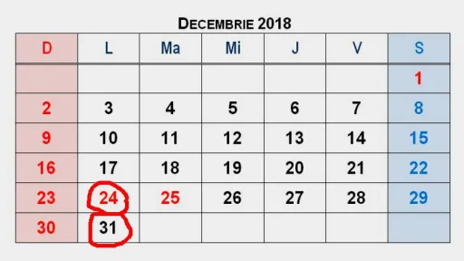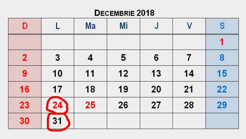 Ministerul Sănătății, Muncii și Protecției Sociale declară încă două zile libere în luna decembrie. Prin urmare, cetățenii se vor odihni pe data de 24 și 31 decembrie, având în vedere că acesta pică în zile de luni, iar pe 8 și 15 decembrie vor fi zile lucrătoare.