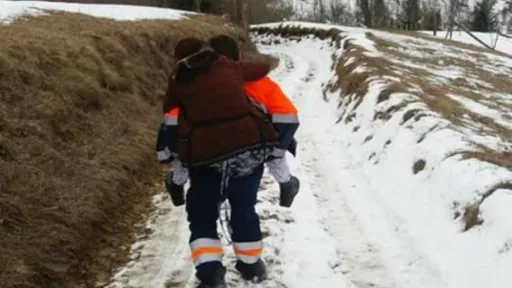 Un șofer de la Ambulanţă a fost fotografiat în timp ce căra în spate o bolnavă pe o distanţă de circa jumătate de kilometru.A fost nevoit să facă asta pentru că, fiind o zona relativ izolată, cu drumuri proaste şi inudate de noroi, maşina n-a putut urca până la locuinţa pacientei din cauza condiţiilor drumului de acces.Ambulanţierul Dumitru Ignat din Județul Alba, România, a luat pacienta în spate, iar asistenta Geta Ciorea a dus trusa, monitorul şi butelia de oxigen.sursa
